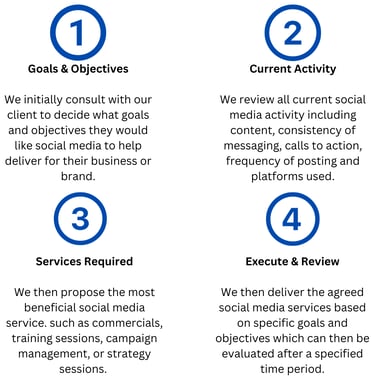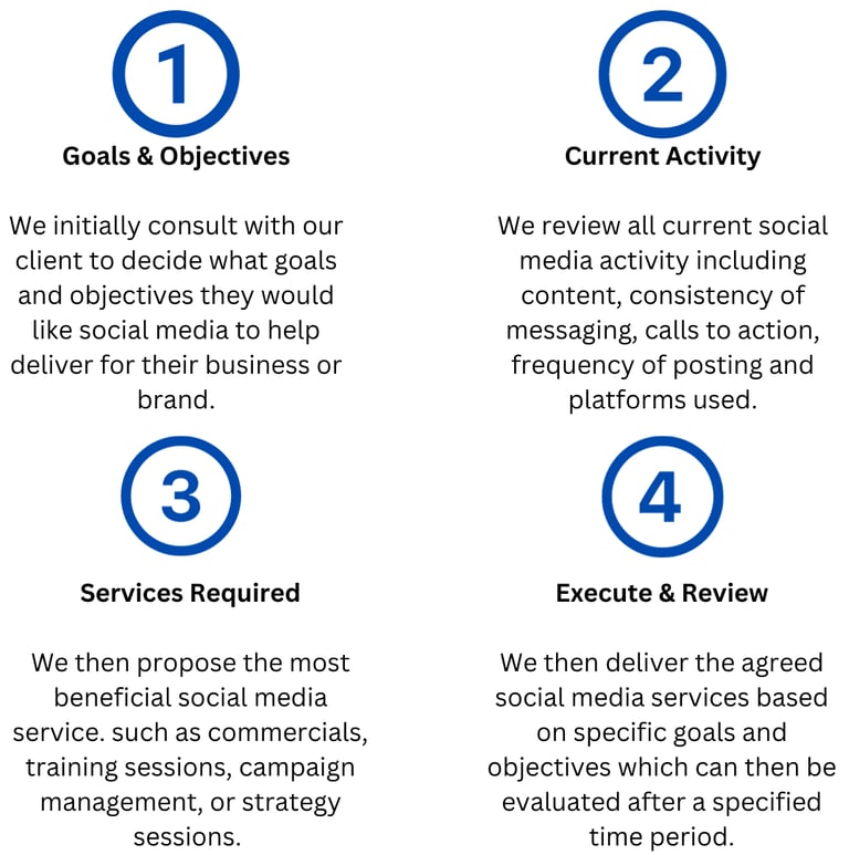 Every client has a different set of business goals and objectives. To ensure our social media clients get the maximum value out of their time with us and that we deliver for them, we go through an evaluation process to decide which social media service is most suitable for their present needs along with agreed targets.